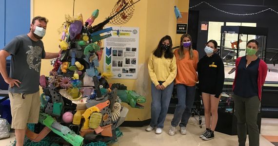 Creating art from single-use plastics and trash from our ecosystem displays the environmental issues we face in a dynamic way. Surface 71 creates and uses these sculptures we've created to help educate our community and create change!